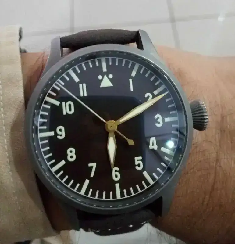 Esfera: color marrón oscuro y con un lumen en esfera y agujas,cojonudo .Mejor que un sumo
