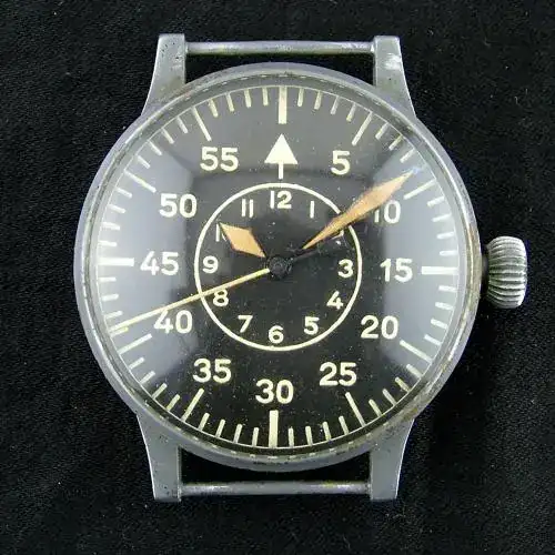 Solían llevarlo encima de las cazadoras de cuero, con una correa muy larga. Estaban hechos para no perder la orientación del reloj en caso de accidente, y quedarse boca abajo por ejemplo, de ahí el triángulo a las 12h. He tenido un Steinhart type b 47mm y un Laco Dortmund de 45mm. Me encanta Laco. Sus modelos, exteriormente son muy fieles, excepto tamaño, incluyendo esas asas rectas que no son muy cómodas. Lleva todas las inscripciones obligadas por el ministerio que ordenó la fabricación, así cómo todo el encanto de ser una de las cinco marcas que los fabricaron. El tema de las asas es lo que hizo que se marchara55cm... 😳😳😳