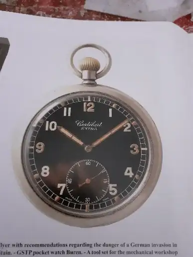 Una adaptacion de reloj de pulsera con corona a las nueve y un dial inspirado en los G.S.T.P o Los bolsillos de la la Heer con los D.H