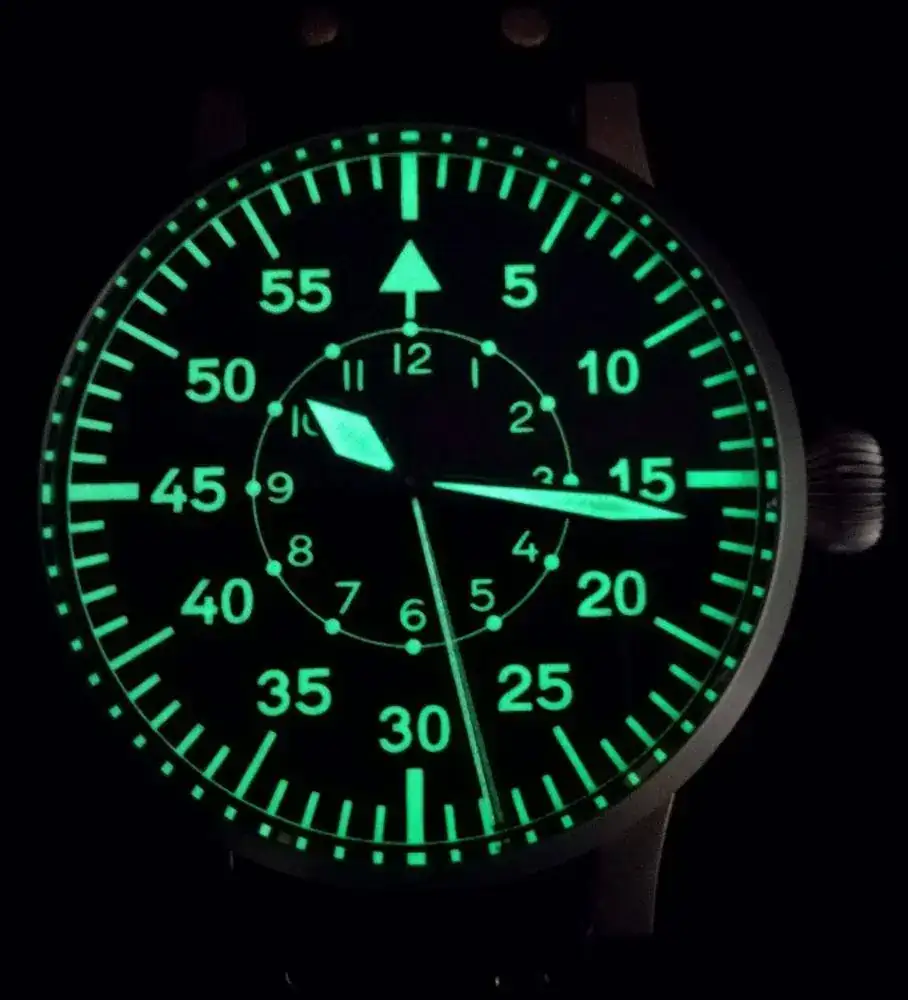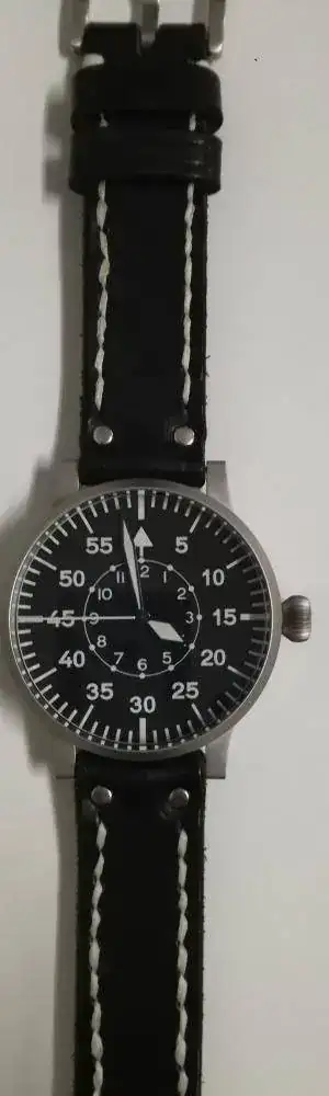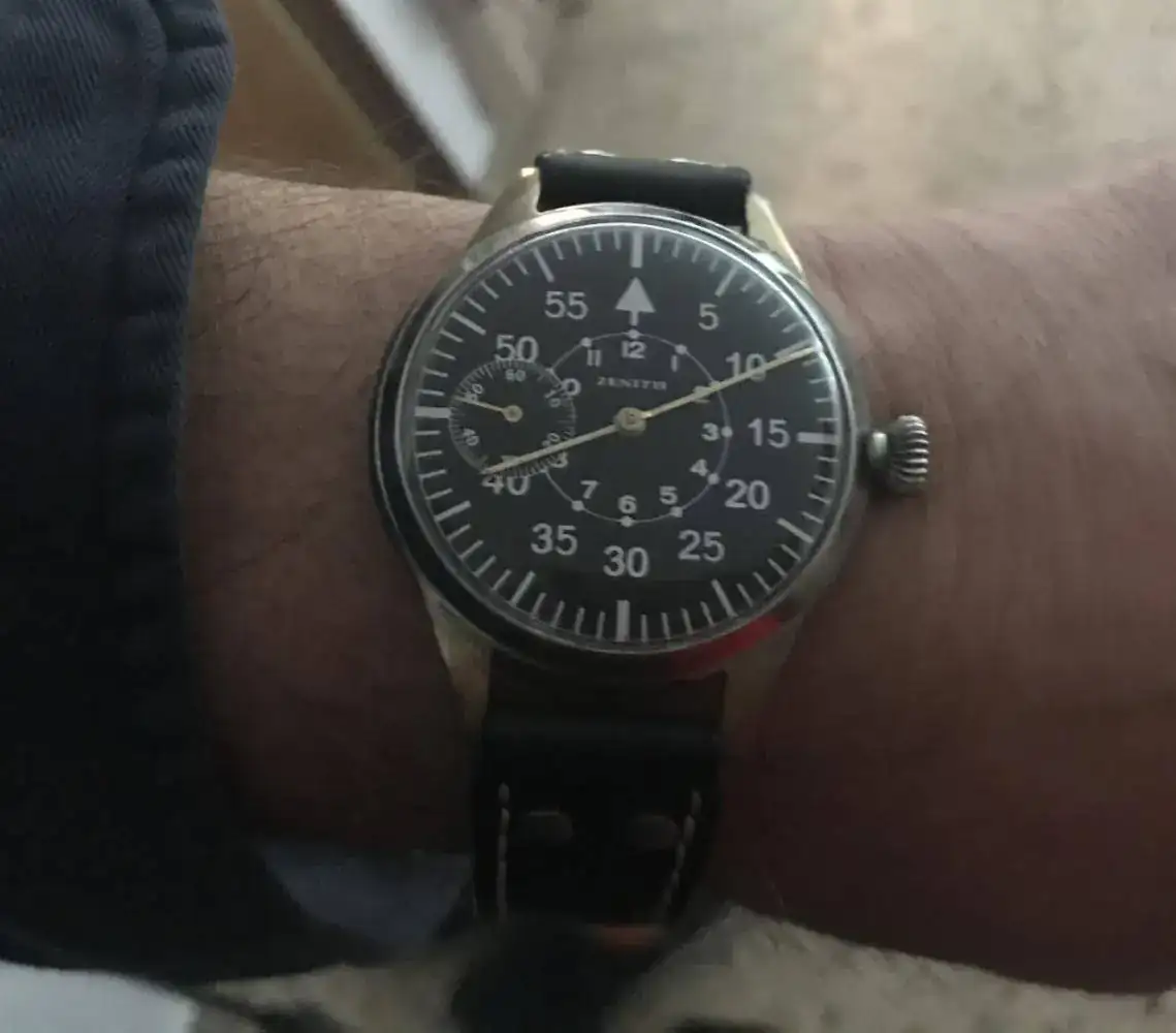 El mío que presente es una réplica Alemana moderna con el mismo tamaño que los auténticos, durante mucho tiempo lo use a diario, con su 55 mm y una correa de 26 mm llamaba mucho la atención, tengo otro B de los años 40 pero más pequeños, lo buscare y lo subo.