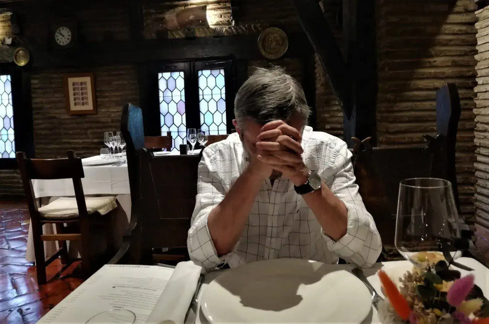 La foto que me ha dado la idea es la que intentó hacerme recientemente mi mujer a traición cuando nos sentamos a comer en un "glorioso" y clásico restaurante de mi ciudad, "no me pilló", estuve listo