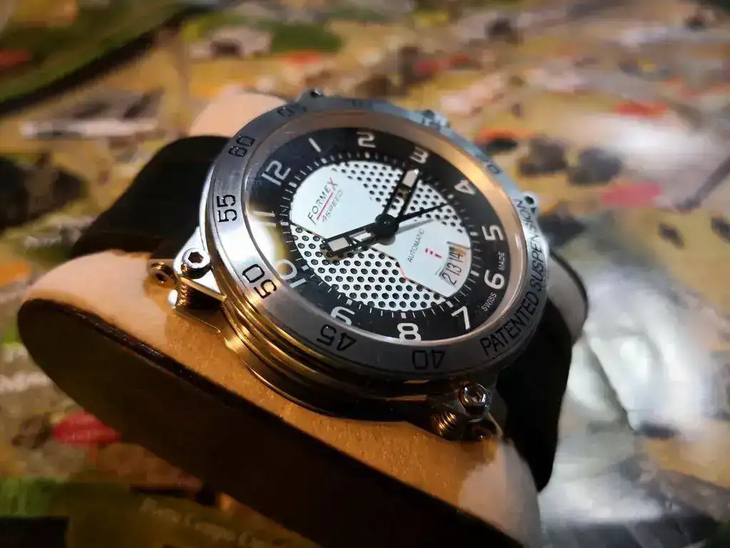 Lo realmente curioso de los relojes Formex es el sistema de suspensión de la caja que evita que los golpes bruscos afecten al calibre.