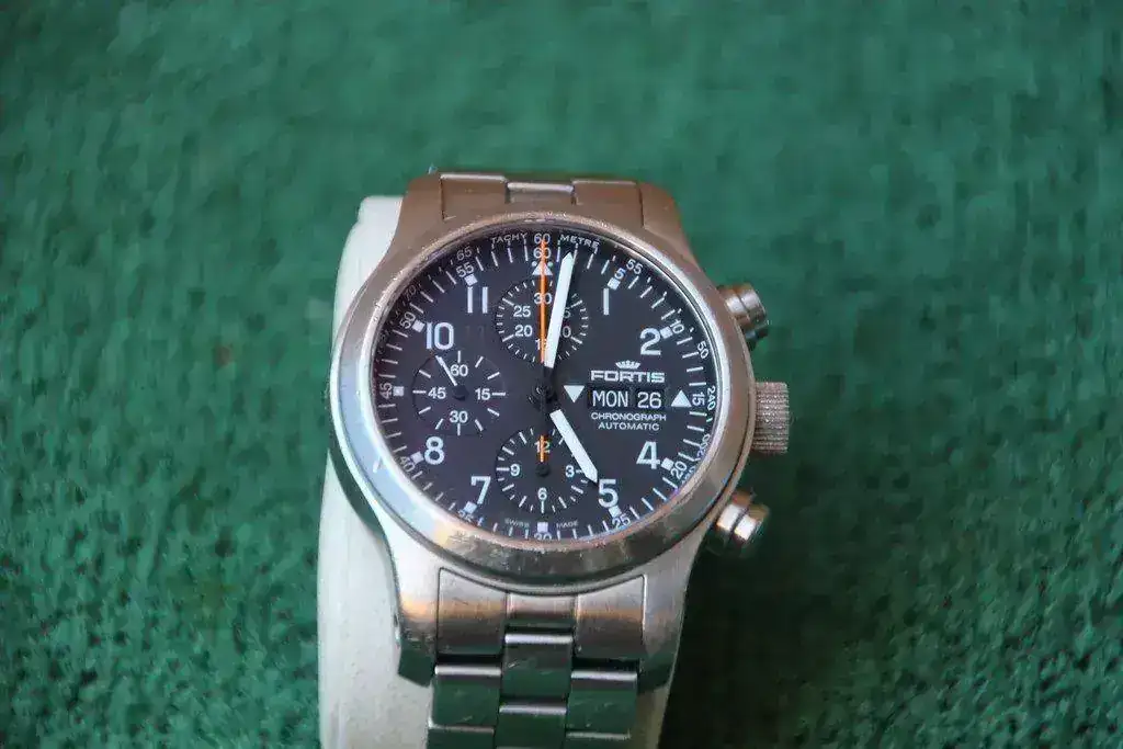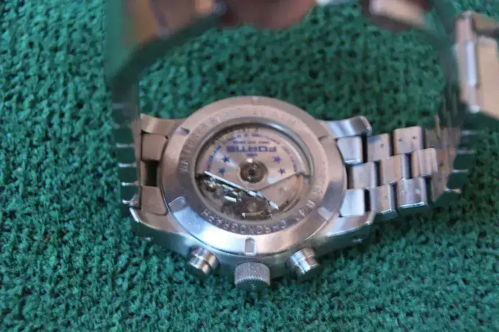 el reloj se encuentra sin caja ni papeles , el estado de marcha y el funcionamiento del crono es correcto , así como el reseteo de este ultimo .