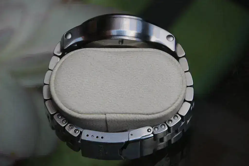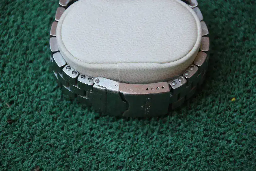 como podeis ver en las fotos el reloj esta usado y tiene marcas de uso (nunca ha sido pulido), el cristal de zafiro tiene arañazos en el antireflejos que no he podido plasmar en las fotos , mirándolo de frente no se aprecian , girando según la luz se ven .