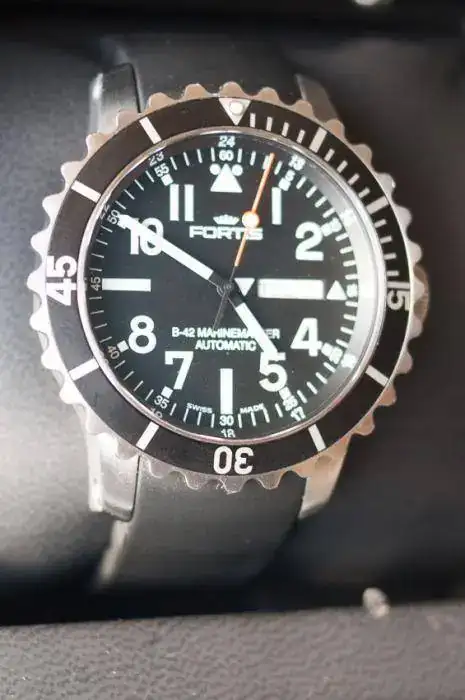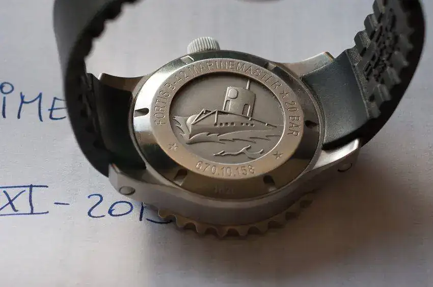 Vendo Fortis B-42 Marinemaster day/date con caja original y documentación oficial. Lo que me parece diferente es la corona "estrellada" y el bajorrelieve de la tapa trasera, que me pareció realmente bonito, y con edición numerada.