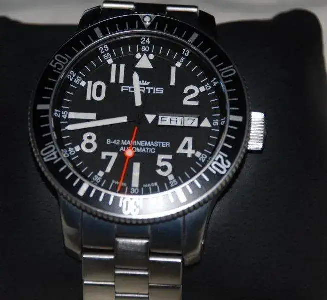 Pues nada que vendo por no usar mi Fortis B-42 Marinemaster.El reloj está en muy buen estado como se aprecia en las fotos, el cristal sin rayas y con un anti reflejos a la altura de marcas de mayor importe. Sólo destacar que tiene alguna pequeña micro raya y nada más. Funciona en parámetros perfectos de precisión. Lo vendo con armis completo y eslabones sobrantes. Destacar que el armis es de un grosor, peso y calidad increíbles y además con eslabones sobrantes. Tengo también un deployante Fortis de la correa de caucho por si alguien lo quiere que no incluyo en el precio.