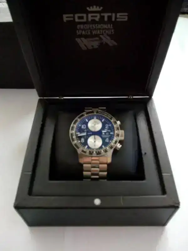 Buenos días. Pongo a la venta este estupendo reloj que lleva conmigo desde 2011. Se trata de un Fortis B42 Stratoliner crono, que he estado usando habitualmente pero que a pesar de eso está muy bien cuidado. El reloj está con brazalete de acero de Fortis (está ajustado a mi muñeca de 16.5 cm, y los eslabones que le quité en su día no los tengo