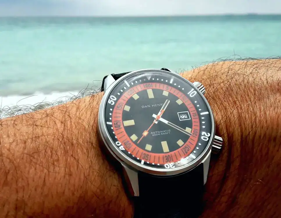 Justamente esta mañana me he bañado en la playa con este Dan Henry , un 200m sin corona roscada.