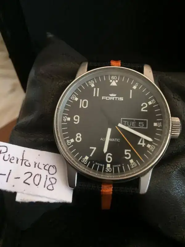 Fruto de un ere en mi caja de relojes (ja ja ja ) saco al foro este reloj que me entro como parte de un pago. Viene con caja y papeles, fuera de garantia, armis completo (la caja donde se pone el reloj tiene algunos piques, tipico de la polipiel. El cristal al ser mineral tiene algun pelillo a veces si uno se fija muchisimo a tras luz se puede divisar, pero con un ligero pulido queda inmaculado). Es un reloj con corona roscada, funciona perfectamente y es un 200 metros.