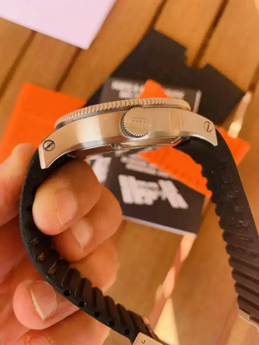 El reloj está revisado por SAT oficial y está en garantía hasta el 15-11-2020. El reloj se entrega con correa de caucho naranja usada con la que venía el reloj y correa de caucho nueva de color negro la que sale en las fotografías. El caucho está cortado para muñeca de 17,5/ 18 mm queda holgada, un poco más en la naranja.