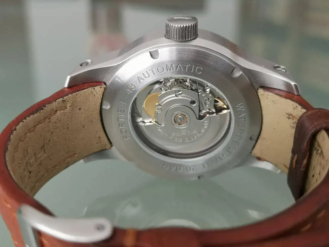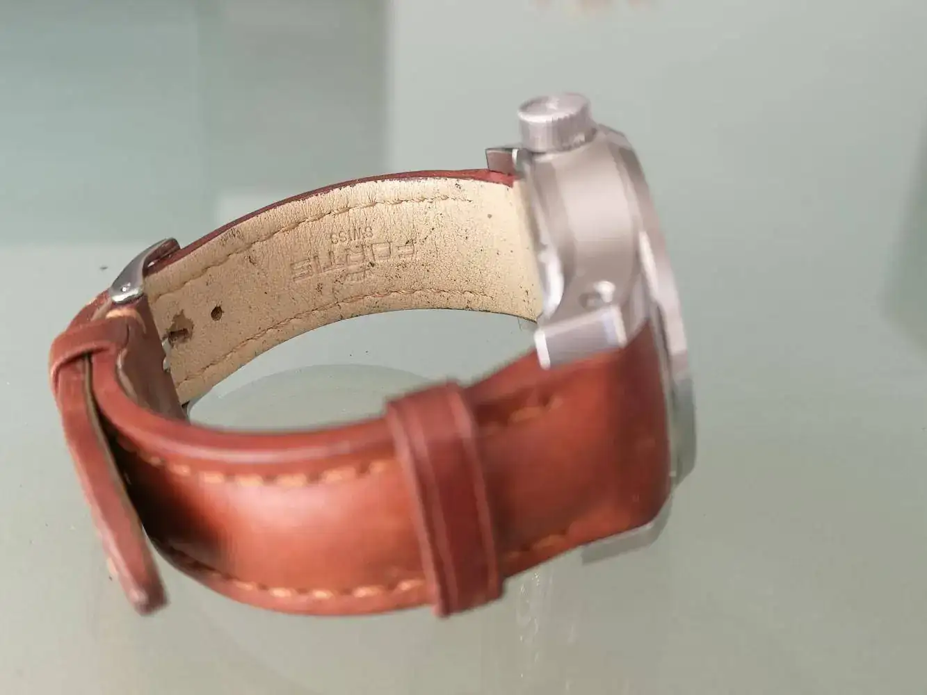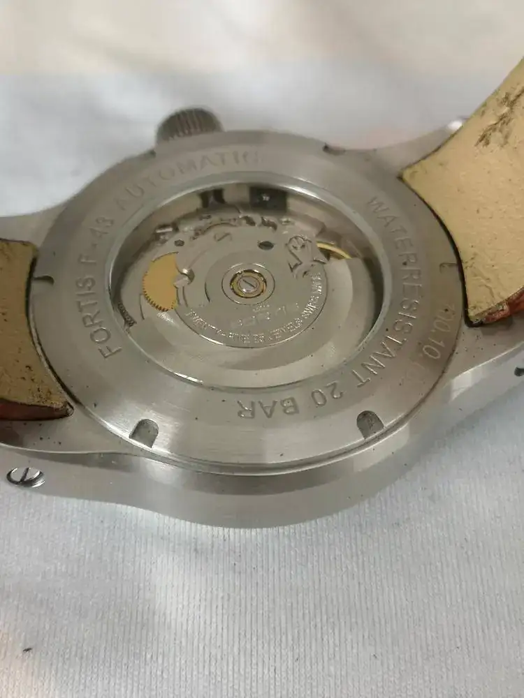 Brazalete: Correa de piel con hebilla, ambos firmados Fortis