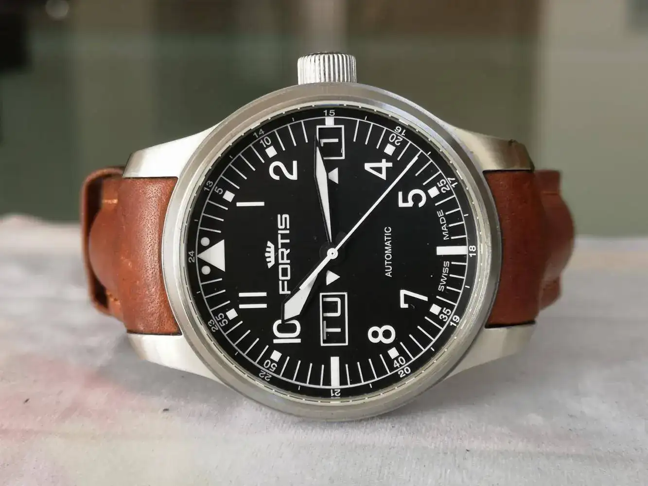 Pongo a la venta este reloj de piloto Fortis F-42 , referencia 700.10.162, con doble ventanilla para fecha y día sobredimensionadas.