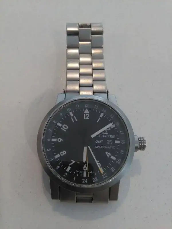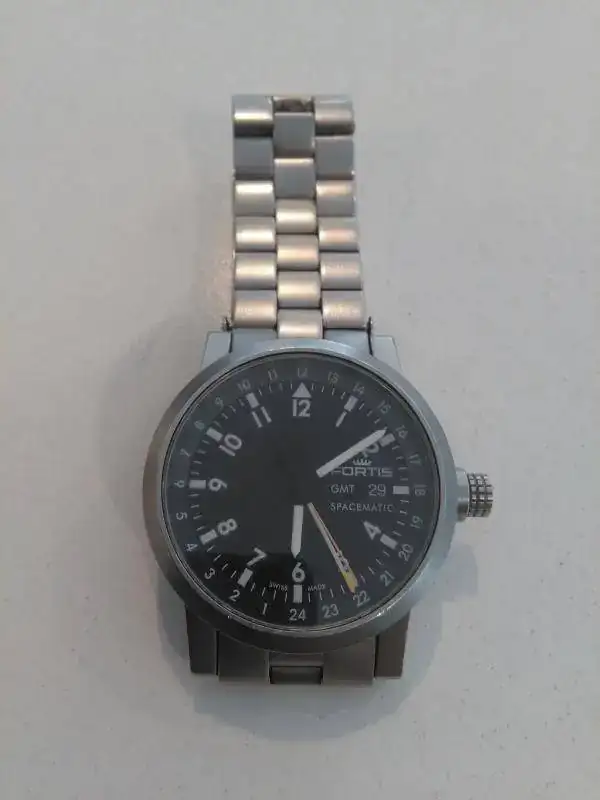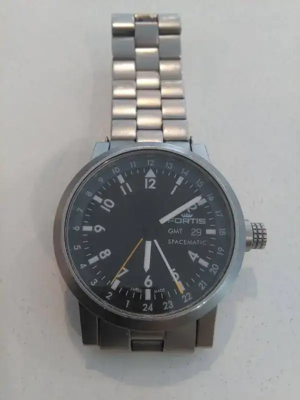 Fortis Spacematic GMT usado pero en buen estado general. Leves marcas que se irían con un pulido, pero yo nunca lo he visto necesario. No tengo documentación. Aceptaria cambio por B42Marca: FORTIS Modelo: SPACEMATIC GMTAño de compra (nuevo): Año de compra por quien lo vende (si es distinto): 2014Estado: (nuevo/usado) Movimiento: AutomaticoCaja (medidas): Cristal: Esfera: Brazalete: ¿Estuche? s/n Documentación y tipo de la misma ¿Garantía vigente? s/n NO Precio: (o cambio) 495¿Envío incluido? s/n Forma de envío A convenir