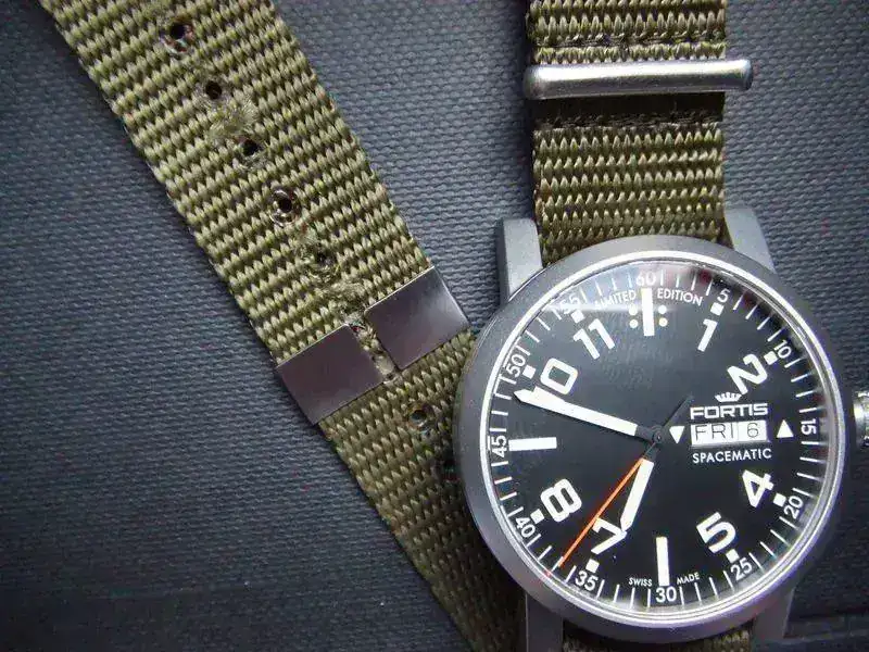 El reloj esta usado muy poco , lo he mirado con lupa y solo le veo un mini roce al lado de las doce en la caja pero a simple vista no se ve(yo no lo veo), lleva una nato que esta muy bien solo al lado de un par de agujeros de la correa están digamos algo deshilachados ( en la foto igual se ve un poco). Pero esta perfecta para el uso.
