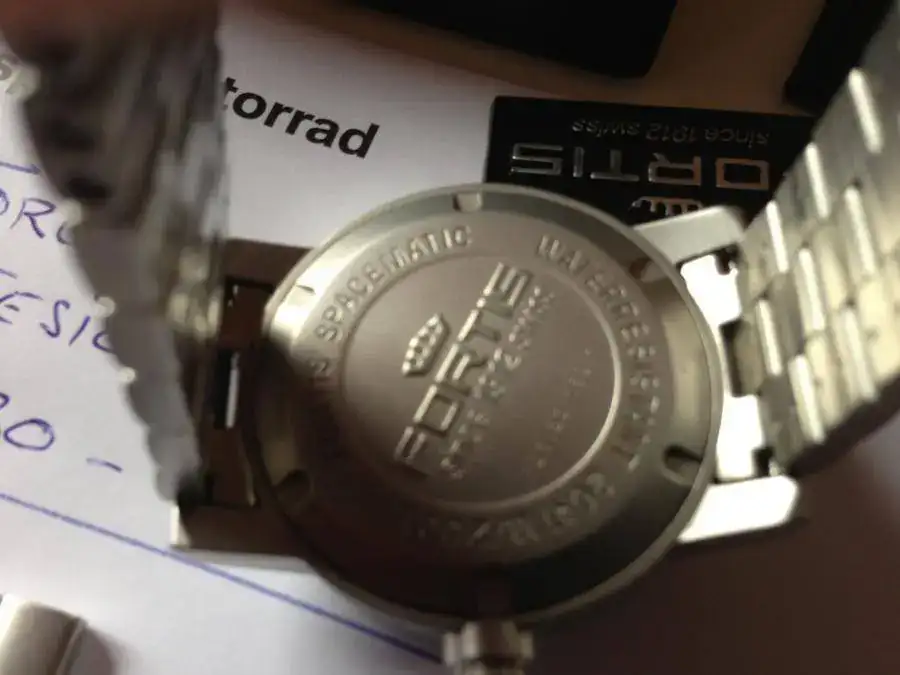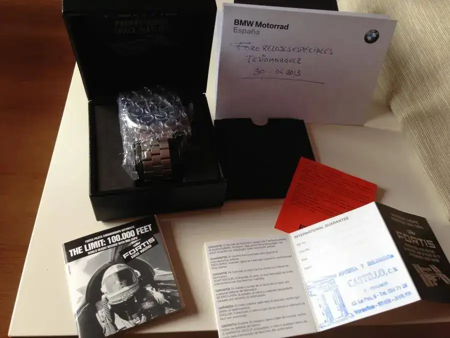 FORTIS SPACEMATIC NO CHRONO,MOVIMIENTO AUTOMATICO ETA, 40MM DE DIAMETRO SIN CORONA, CRISTAL DE ZAFIRO,CALENDARIO A LAS 3,SUMERGIBLE 200M,ARMIS ORIGINAL COMPLETO,CIERRE DE BROCHE CON EXTENSIBLE,CON EL SET COMPLETO(caja, documentacion, garantia sellada sin fecha) YO DIRIA QUE 9 SOBRE 10 POR DARLE UN MARGEN. AQUI OS DEJO LAS FOTOS: