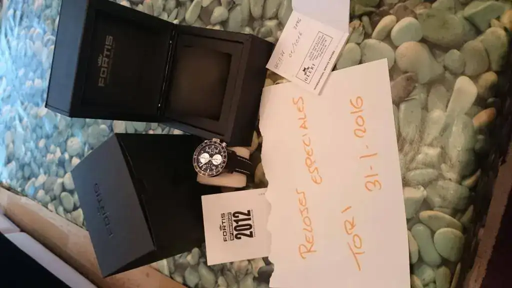 Hola compañeros , pues lo dicho , me compre este reloj con una ilusion tremenda , pero por cosas de la vida voy a tener que vender uno de mis Fortis y dandole y dandole vueltas y la verdad con mucho disguto al final voy a vender el ultimo en llegar , vender o intentarlo porque no estoy seguro jejejeje , necesito cash , asi que no escuchare ofertas de cambio y tampoco regateos , pondre un precio de escandalo para un reloj que no ha salido de casa y su unica puesta ha sido de la habitación al salón , estara un mes creo en venta de no salir tendre o que darle una subida o apretarme un mes ,aguantar el agobio fortuito y despues relajarme junto a esta maravillosa pieza . Como digo el reloj esta nuevo , salvo que no puedo anunciarlo como tal dire y es cierto que tiene una puesta en casa , no ha salido a la calle y su estado es IMPOLUTO , el reloj es de PVD , salvo pulsadores y corona , la pieza que recarga el reloj es de PVD ( una pasada!!) aun conserva los plasticos de la tapa trasera y el plastico de delante que quite para las fotos , tiene fecha de garantia de Enero de 2016....no digo mas ,los dos años completos,las subesferas son plata y los indices son cromados efecto cristal....sin palabras , mejor verlo . Soy muy fan de Fortis y esta es una obra de arte de la marca , lo pongo en tu casa por 1750€ con envio por mrw24h a la peninsula , el reloj tiene un pvp de bastante mas de 3000€ y con suerte lo encuentras por ebay en 2400€ mas o menos , al ser una edicion limitada , de estreno....bueno reestreno , este precio es INCREIBLE y casi imposible de encontrar , repito no cambios ni ofertas a la baja , os dejo las fotos :