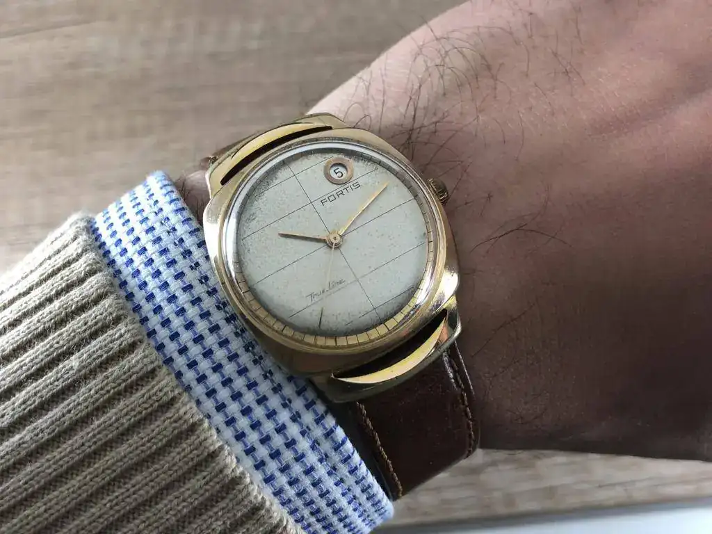 Buena saco a la venta este bonito y original Fortis vintage que compre hace tiempo pero que al final he acabado usando muy poco. Me gusto la forma de su caja bastante poco vista y original y sobre todo la esfera que tiene con esas lineas y una bonita patina.