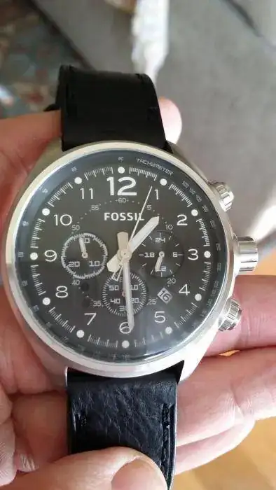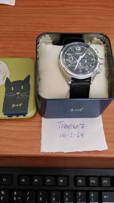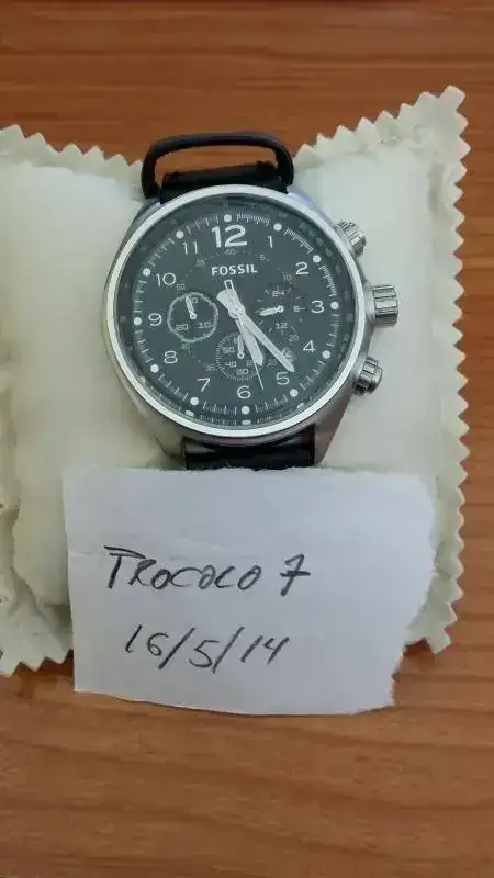 Salud, compañeros. Vendo este Fossil en perfecto estado. Fué comprado en tienda física, en enero de 2012. La garantía ya ha caducado. Las características son: caja de 45 mm sin contar corona, cronógrafo, cristal mineral, maquinaria de cuarzo (miyota creo) 100metros w.r. y correa de cuero. Por cierto, la correa está al 95%, ya que en dos años han sido cinco o seis puestas nada más. Pues eso, un reloj impecable, sin marca alguna, funcionando perfectamente y barato, barato.. 73 euros envío incluido. Caja metálica original incluida.
