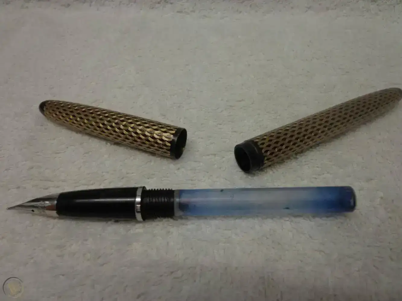 Insignia “Laque cobalt”.- Laca azul y capuchón dorado. Posterior a 1994, que es cuando está disponible esa terminación, pero no puedo concretar mas. Me llamó a gritos desde una caja de “cadáveres” en una tienda de trastos viejos y no pude dejarla allí.