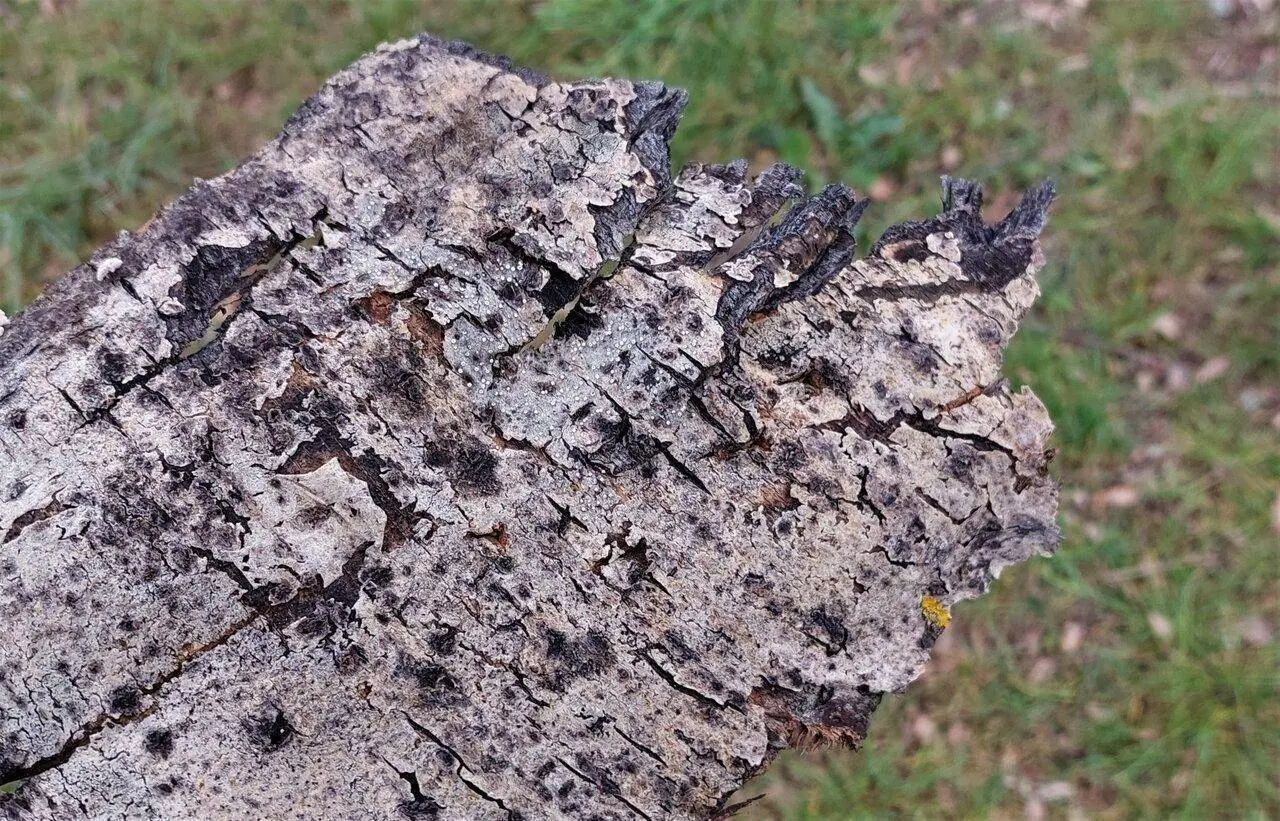Cerca de ellas un trozo de corteza de árbol también bastante seca.
