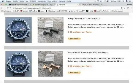 Muchas gracias tertuliano,el mes que viene me pondré en contacto con ellos,también me gustaría comprar los adaptadores del bn2024 pero pintarlos de alguna manera de negro para ponérselos a mi bn2025 que para ese modelo no han sacado en negro y ando con ganas de contactar contigo por el citizen que me mandaste información pero ando más tieso que una mojama y lo ando posponiendo,no se si todavía estará disponibleAquí los tienen y muy bien de precios