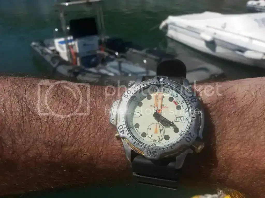 Fui a bucear el miércoles y el jueves. De todos modos, aunque este puede bajar, no lo hizo él, sino su primo el Citizen Aqualand I, que es el titular para el submarinismo (junto a mis ordenadores de buceo, aunque en la foto aún no me los había puesto).