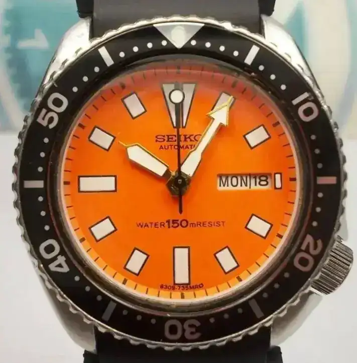 SEIKO 150M DIVERS DAY/DATE MEN'S WATCH 6309-729A, ORANGE (DEC 1985)