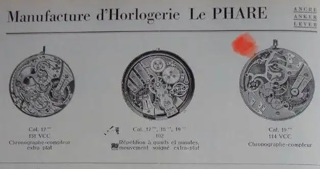 Es clavado, pero los que he visto no tienen esa M asi que no se.¿puede ser un movimiento encargado a un tercero de alguno de ellos? O que Le Phare vendiera este movimiento como suyo, habíendolo comprado a martell, martell vendía movimientos a muchas casas.Se parece a este: