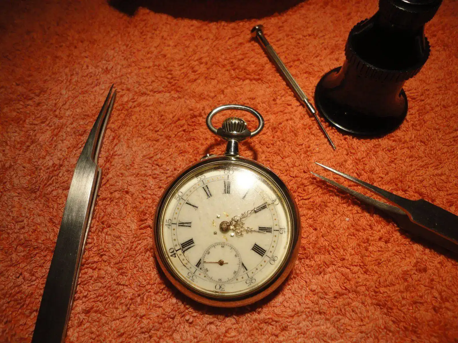 Por cierto, no veas como trabaja este señor los relojes de bolsillo.