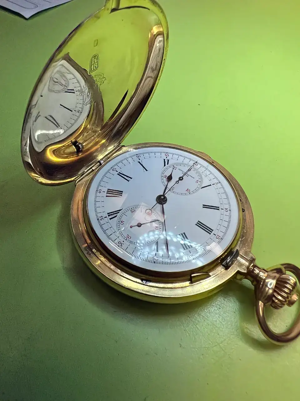 Pues yo he visto muchos sin marcar en la esfera, ya sea con los dos contadores. Este que presento, debe ser 1898/1900. Como te dije no es nada raro y dudo mucho, no, afirmo que no le han cambiado nada y más por ser para el mercado alemán. Y tengo serias dudas que ese que enseña ese enlace sea de la primera promoción.... y más sin citar el nº de serie... No es calidad CS y posiblemente ya vino con la caja pavonada, que son un poco posteriores a esa fecha.El primer Cronógrafo de Omega se fabricó en 1898, el contador de minutos iba de 2 en 2 (1-3-5-7) como vera en la página que te adjunto, un reloj de 1898 ya llevaba el nombre Omega tanto en el dial como en el movimiento, el siguiente Cronografo que fabricaron, llevaba el contador de minutos de 3 en 3 (3-6-9) como el tuyo quiere decir se fabricó de 1900 para adelante por eso me extrañaba la falta del nombre, recuerdo algunos cronógrafos que vi por internet todos los diales llevaban la marca Omega, pero bueno después de 100 años han podido cambiar diales, nombres, cualquier cosa……