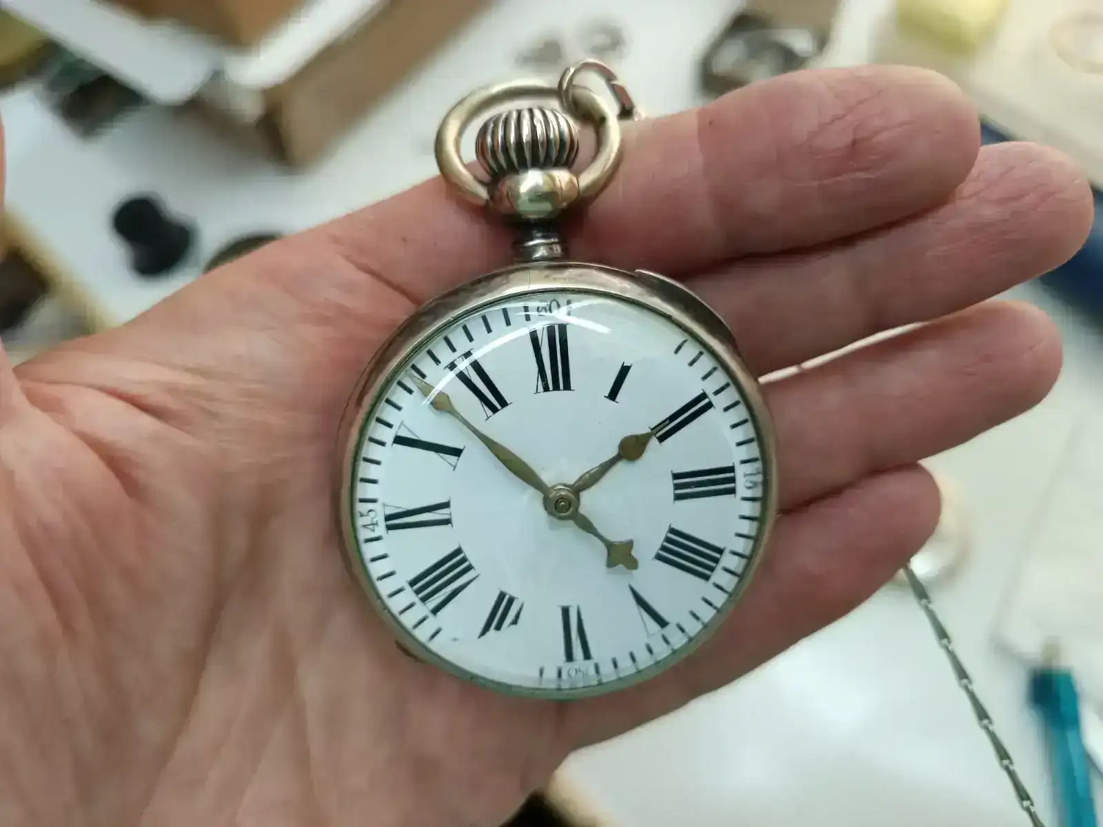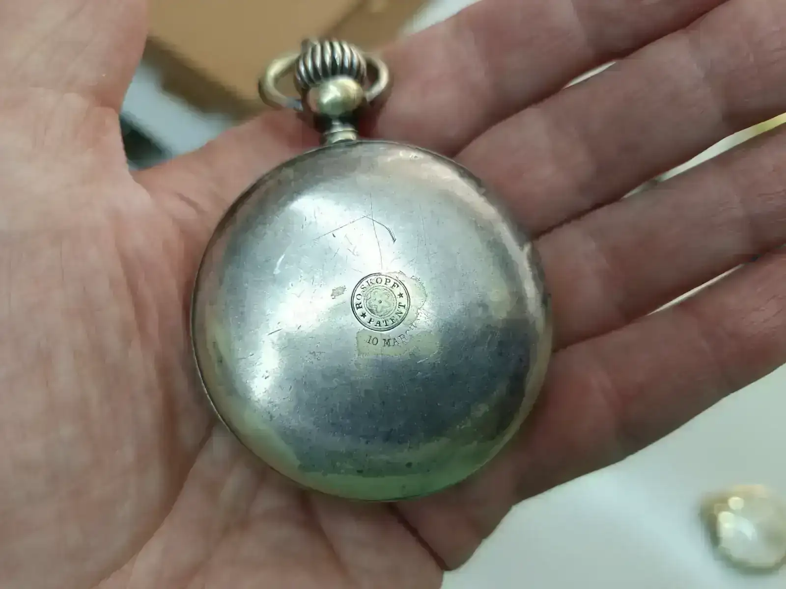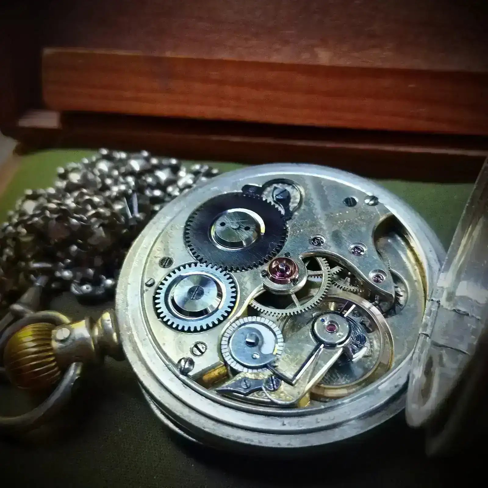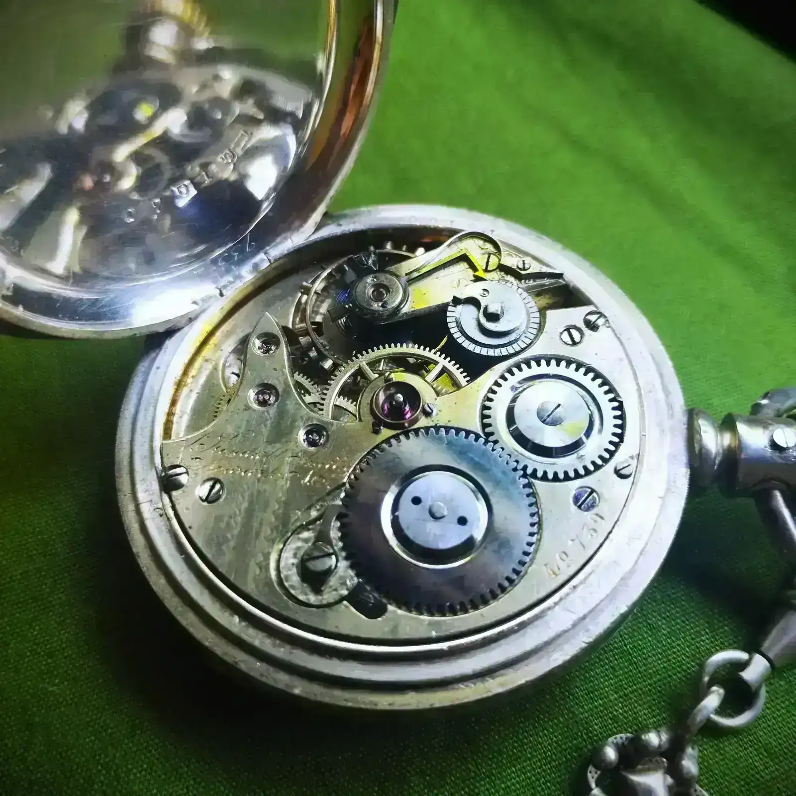 “Dado que la versión 1A del reloj se fabricó en 1895/96, es muy probable que tuviera una caja de oro. Dado que la caja de plata en la que está ahora el movimiento lleva el número 79552 y data de 1917/1918, o incluso 1919, parece razonable suponer que el propietario de la época había donado el oro de la caja como préstamo de guerra en la campaña “Gold gab ich für Eisen” (Di oro por hierro) y había hecho encajar el movimiento en una caja de plata por la fábrica de relojes Union. Al menos yo me he encontrado con relojes así de esta época. Esto haría que el reloj tuviera interés histórico y le daría una historia interesante para las generaciones posteriores.”