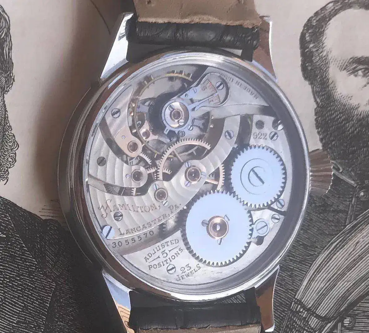 Toda una preciosidad...Aclarado sobre el tamaño del Hamilton 920 de Miguel, el Hamilton 922 también catalogado como 12S resulto en este caso que el movimiento era algo más pequeño, por lo cual Hamilton tuvo que fabricar una caja especial, las cajas eran chapadas en oro y en oro de 14 K, de este calibre salió el famoso Hamilton 922 MP (Masterpiece) se fabricó con un volante de Invar que se distinguía visualmente de un volante estándar, los coleccionistas consideran que fue la obra maestra de Hamilton, fue el competidor del Elgin CH Hulburd , del Waltham Premier Maximus y el Howard Edward Howard, este 922 MP se fabricó en caja de 18 k y caja de Iradium Platinum, su precio sobrepasaba los ferroviarios, pero creo sinceramente que era por el alto coste de las cajas.