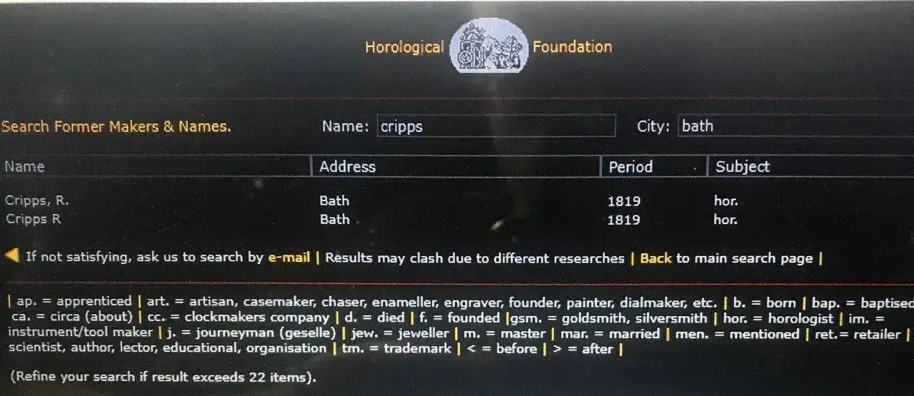 Muchas gracias Julio. Si, 1819 es la única fecha y todo gira en torno al directorio de Bath que justamente es de ese mismo año, Algunos relojes de Roskell y de Litherland y lith.co venían marcados en su interior. Como el reloj ha de recibir un servicio, al abrilo igual encontramos más información. De momento se lo otorgamos a CrippsMiguel te gusta lo difícil, encontrar esta pieza hay buscar y rebuscar, no es tan fácil, te felicito por esta pieza tan exclusiva.