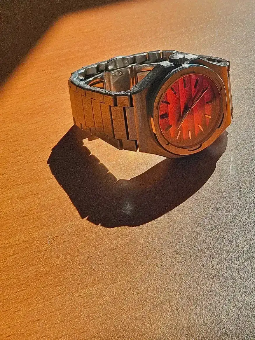Me costó bastante sacar una foto que me gustara. Como tú, quería ver el díal, pero no había manera si no era de frente. Entonces tuve que escoger: dial, o corona y las “abstracta/artística”. Y como del dial ya tenía muchas… 😅