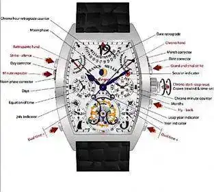 Actualmente en el pedestal de relojes sólo se han podido superar tantas en un reloj de bolsillo (con tanto dato sería ilegible cualquier esfera en un reloj de pulsera).