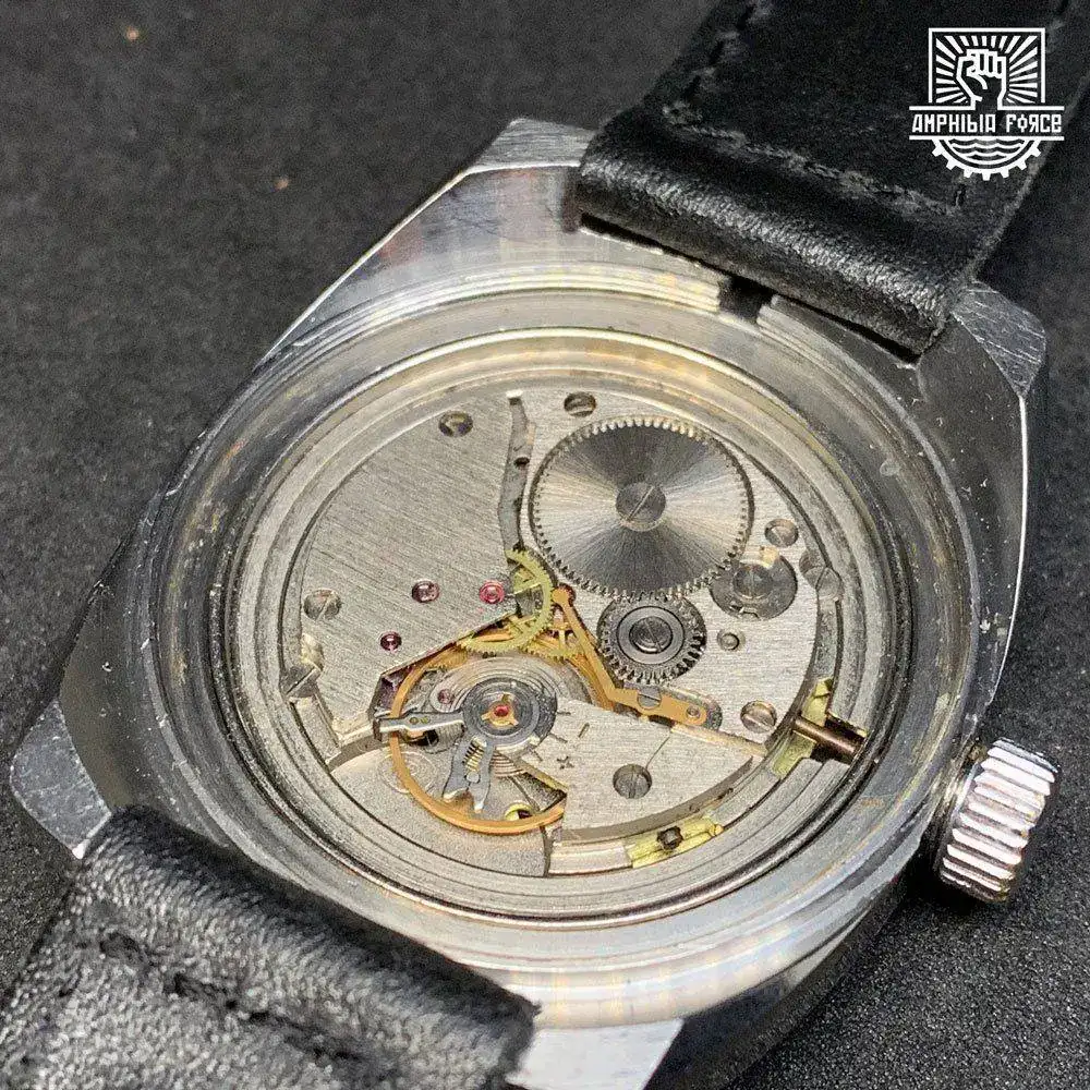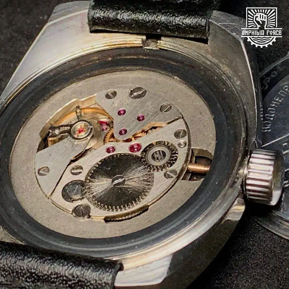 Vino ya con esta esfera y este movimiento, que no funcionaba. Se ha reparado el movimiento que es un 2414, que nunca se montó en cajas 119, ni tampoco esa esfera Komandirskie. Y lo mismo, no quiero tirar un reloj que funciona: