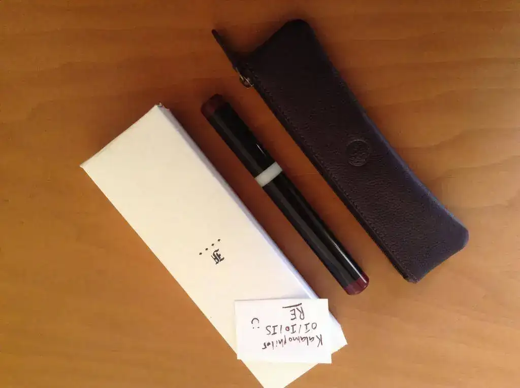 La pluma viene en una caja de cartón, sin estuche, pero dentro de una funda de piel marcada Franklin Christoph, forrada de ante por dentro. Así venía de fábrica, siguiendo la filosofía de la marca de envases útiles y no estuches acumulables en los cajones.