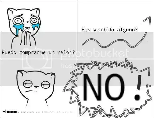 ¿Otro reloj?Pero si tienes mil¿Cuánto te ha costado?¿Seguro?¿Que es de 2ª mano?¿Le compras un reloj usado a un tío que no conoces?¿No tienes ya uno igual?¿Cómo que no es igual?