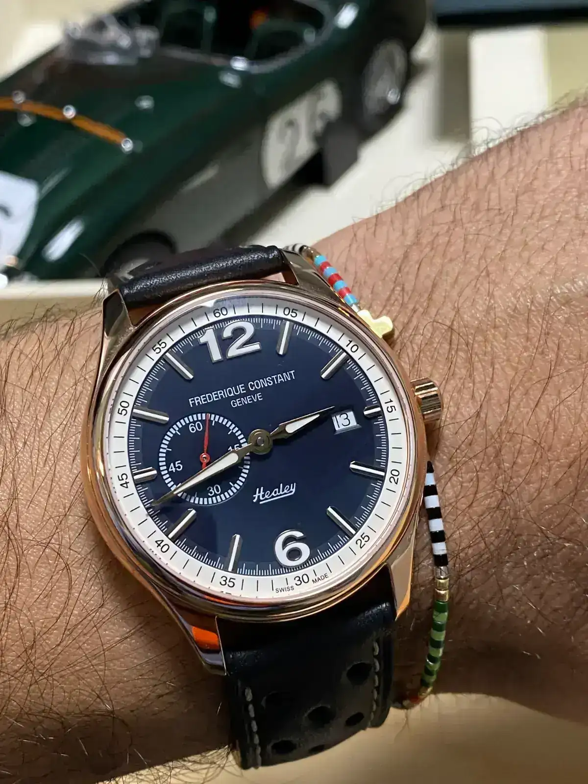 Sí, pero el que tengo no es ese en azul, sino en verde. Ese azul lo compré de casualidad en una subasta y luego vi que era tontería tener dos iguales en distinto color. Hice una presentación del crono verde en su día que estará por ahí pero no sé cómo reverenciarla aquí.Puede ser que fueras tú el que publicó un healey precioso azul y rojo en el FCV?