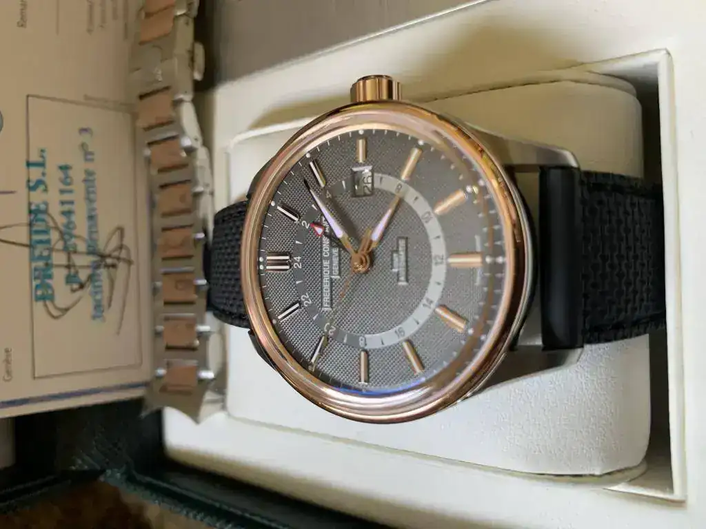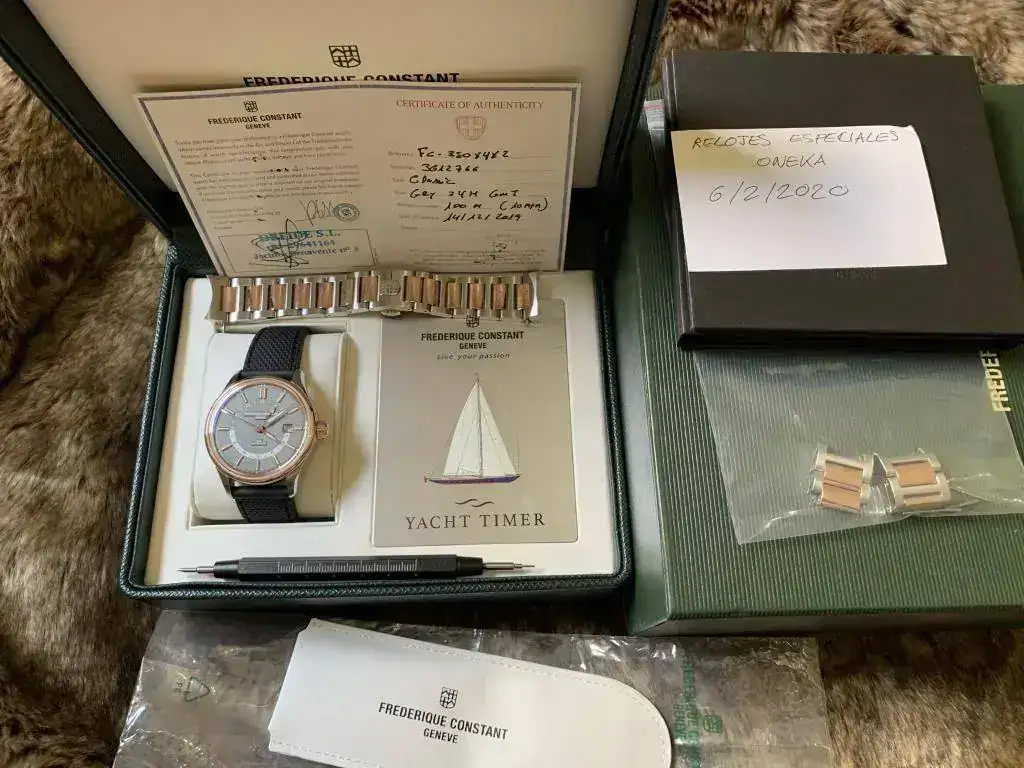 Pongo a la venta este elegantísimo Frederique Constant Yacht Timer GMT en estado de RE ESTRENO. Solo tiene 3 meses y medio y tres puestas contadas.