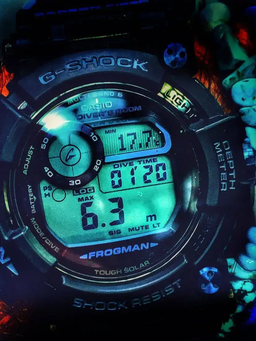 Reloj contundente con muchas funciones en modo buceo, fui este viernes al agua, sin traje (no aguante mucho el frío ) no pude bajar tanto pero si probarlo