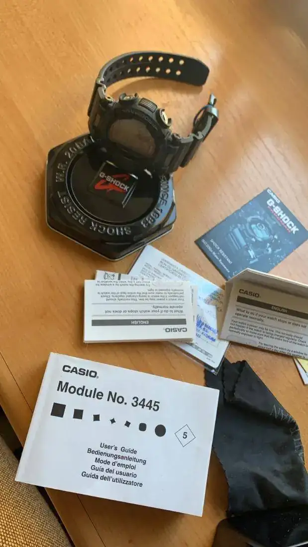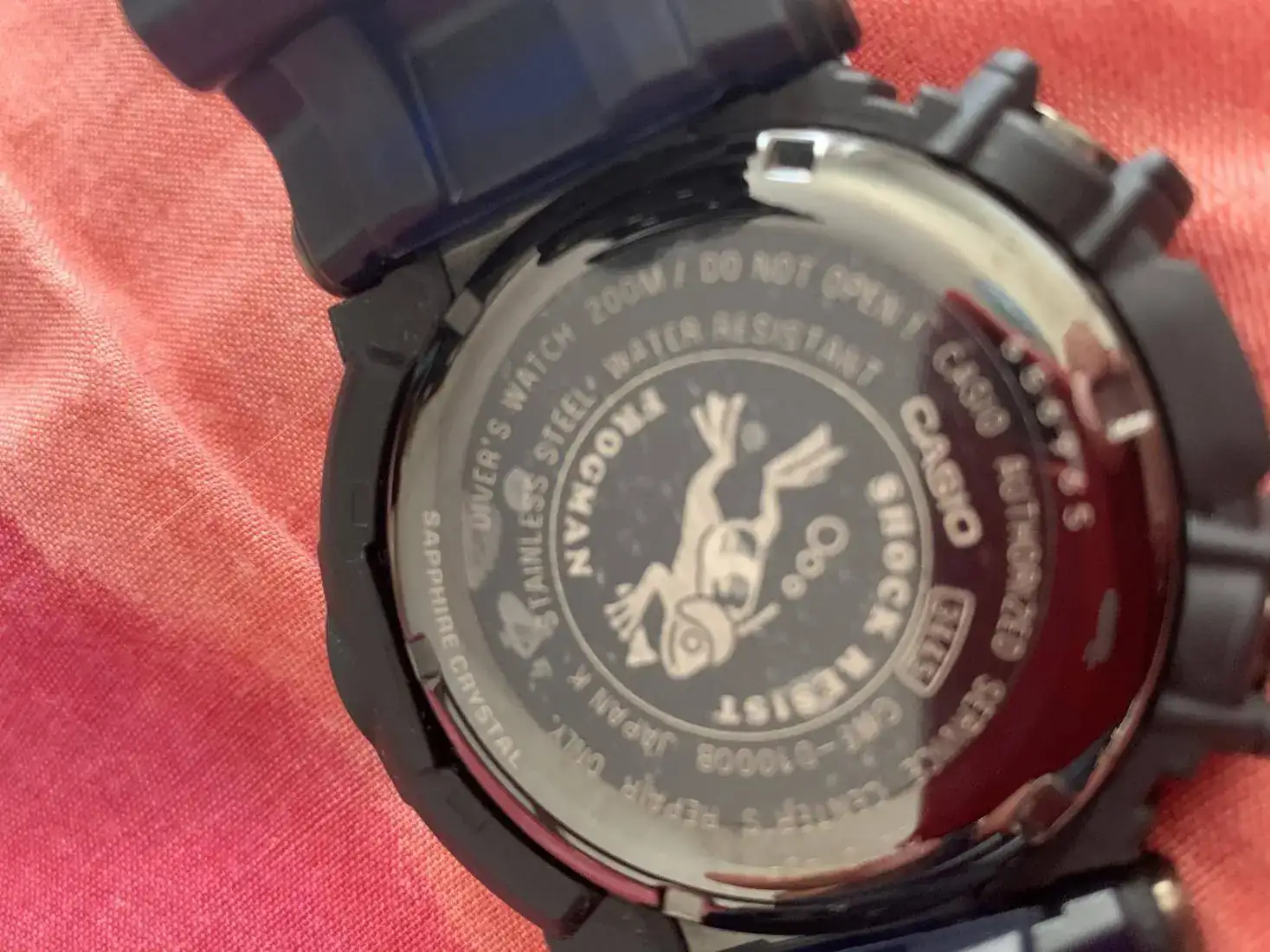 este es el modelo que trae zafiro, el cual se agradece mucho, súper cómodo, un buen calce en la muñeca hace que no te des cuenta casi de que lo llevas. Pero no es liviano. El 1B. Viene con estos toques en azul y no se porque el pvp