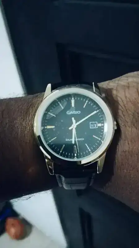 Ahora estuve en un centro comercial, y al salir del Mc Donalds, vi un CASIO solar en una tienda, que instantáneamente llamó mi atención por su sobriedad, manufactura y precio en promoción. No pude resistirme y aquí se los presento Casio MTP - VS01 solar powered y fechador.