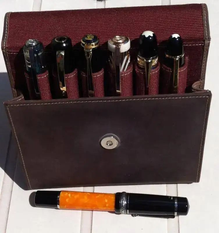 Estoy buscando una funda para cuatro plumas "grandes" que me permita colocarlas dentro, meter dicha funda en mi maletín y despreocuparme de que se puedan dañar en el día a día. De momento, lo más parecido que he visto en internet es esto: