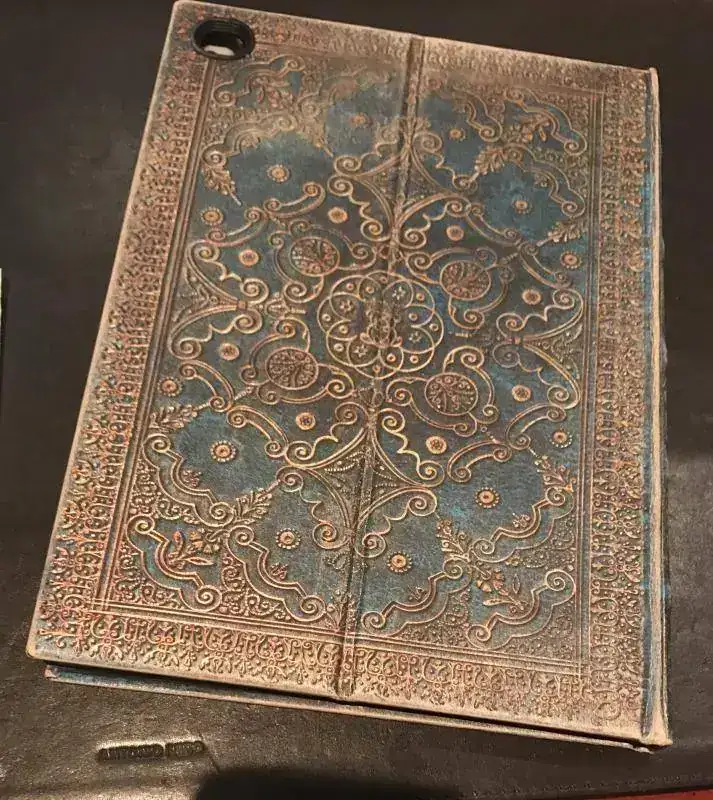 Es una magnífica funda de la marca Paperblanks para el IPad Air 2, aunque probablemente valga también para el Air. Tiene el diseño de un precioso libro antiguo desgastado y da un cache importante al iPad. La vendo por 50 euros más envío y costó el doble o por ahí cuando la compré .
