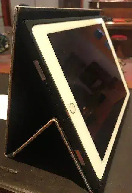 ) sirve para poner el iPad en un montón de posiciones además de protegerlo contra golpes y caídas . El material es una especie de cartón rígido muy duro o algo así. No hay ni que decir que el iPad que va dentro es para que aprecies el efecto y no está incluido en el precio.