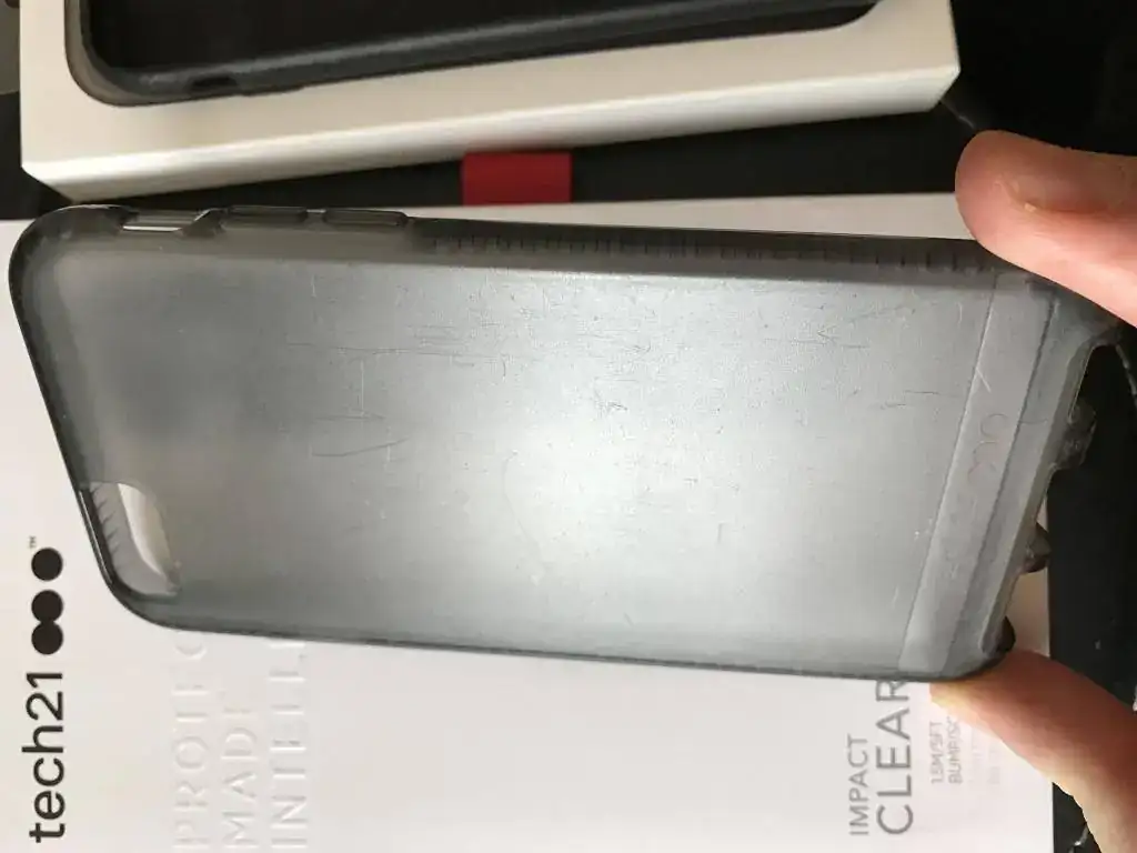 En segundo lugar fina impact clear de Tech 21, ultra resistente, con tecnología de cristal antibalas que aguanta sin inmutarse golpes desde 1,5, muy cómoda y en buen estado, tiene algún arañazo en la parte trasera pero cumple perfectamente con su misión protectora y estética. Precio 20 con envío.