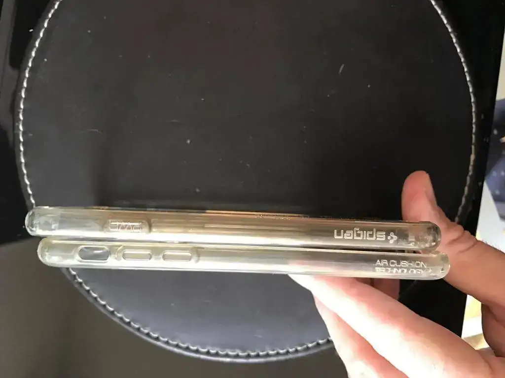 y por último 2 fundas Spigen en una especie de plástico y silicona, de gran calidad, alguna empieza a amarillear en el borde pero no se ve mal. 15 por las 2 con el envío.
