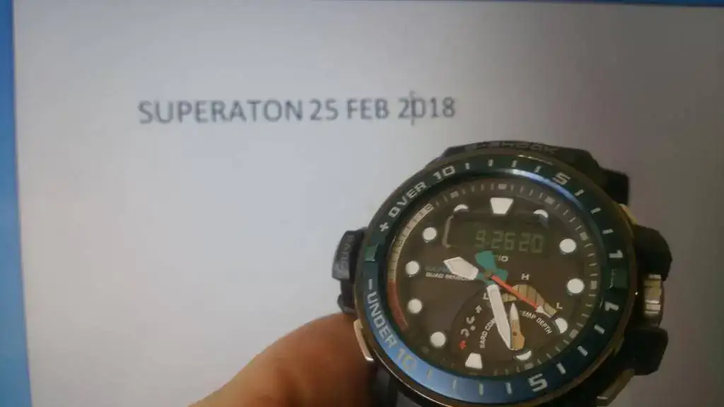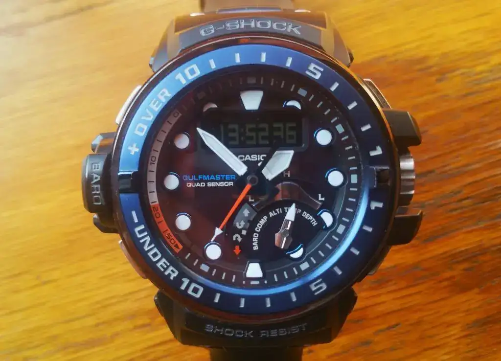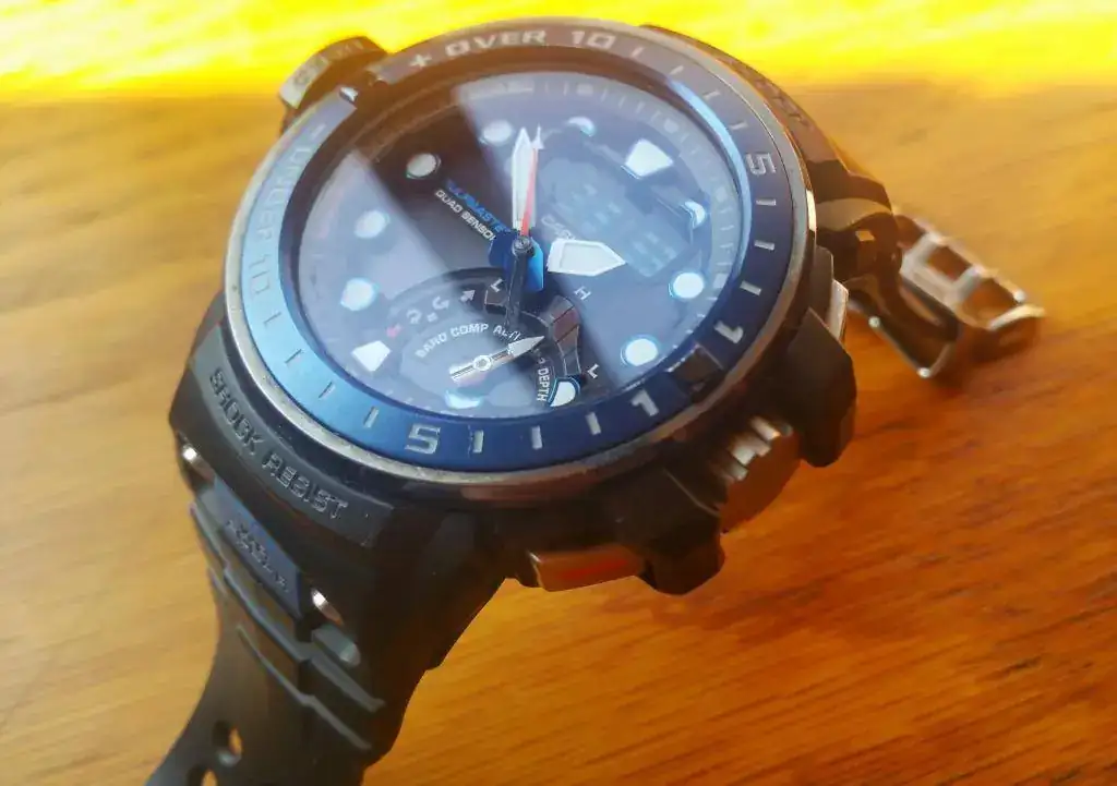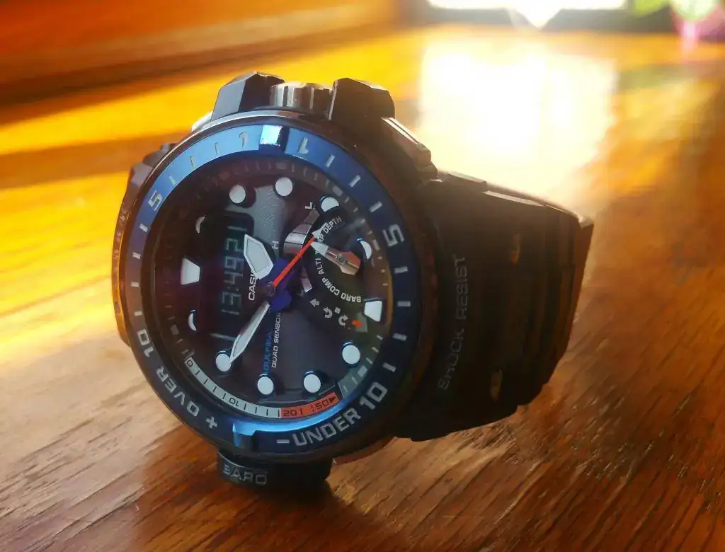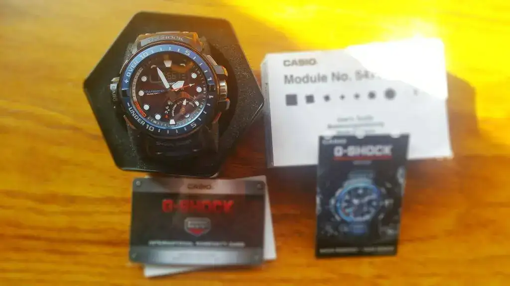 Es un Casio GWN-Q1000-1A. Poco que decir de este modelo: Solar, 200mts, radiocontrolado, barómetro, termómetro, sensor de temperatura, brújula, altímetro, datos de lunas y mareas, profundímetro, indicador de salida y puesta de Sol, carcasa reforzada con carbono, iluminación LED, medición de temperatura del agua, crono, cuenta regresiva, alarmas varias, Smart Access, CORONA ROSCADA, cristal de zafiro y unas dimensiones de 48,00mm x 57,30mm x 17,00mm. Con caja e instrucciones.