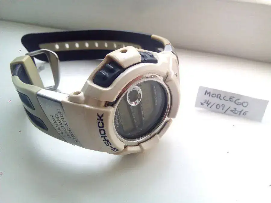 Una edición especial G-SHOCK de la Hawaiian Lifeguard Association bastante dificil de conseguir a día de hoy, en un estado muy bueno. La estanqueidad no puedo garantizarla al no haber sido comprobado recientemente. El reloj funciona correctamente. Al encender la luz se ve resaltado el logo de la asociación, ver foto.